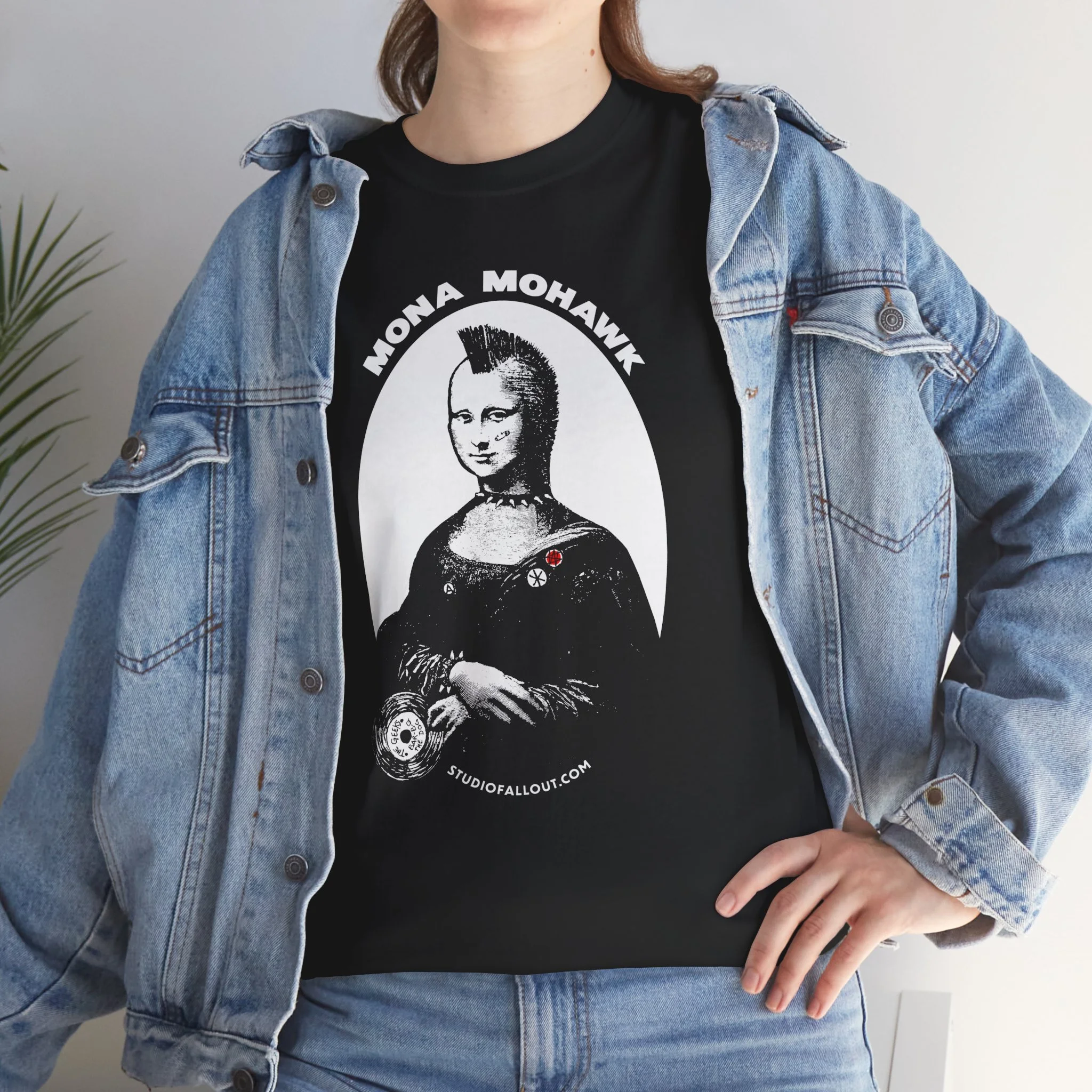 A classic reimagined with a razor edge—Mona Mohawk steps out of the shadows and into the spotlight. This striking design transforms the Mona Lisa into a defiant punk icon, her mohawk cutting through centuries of tradition as she stands illuminated, unapologetic and uncontained.