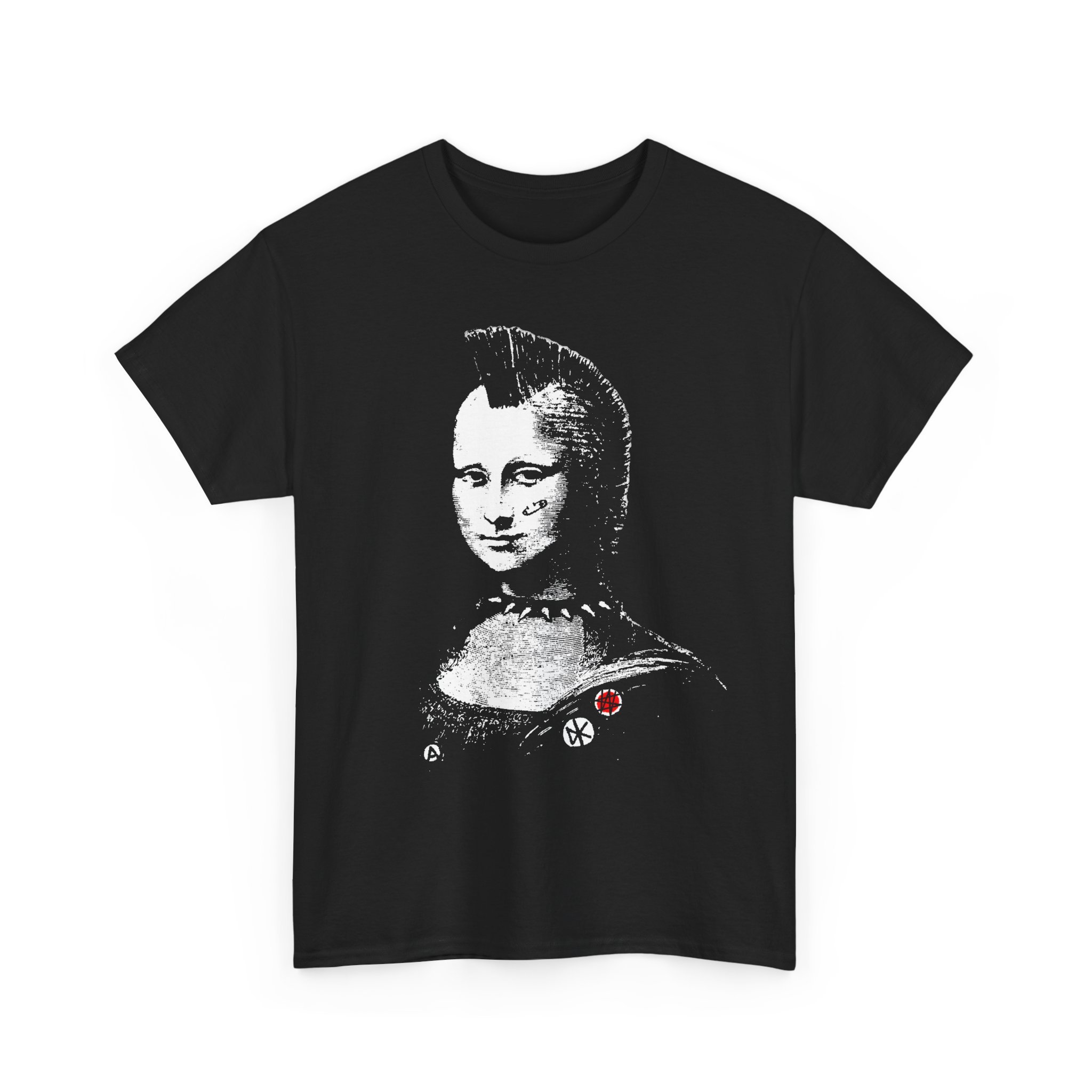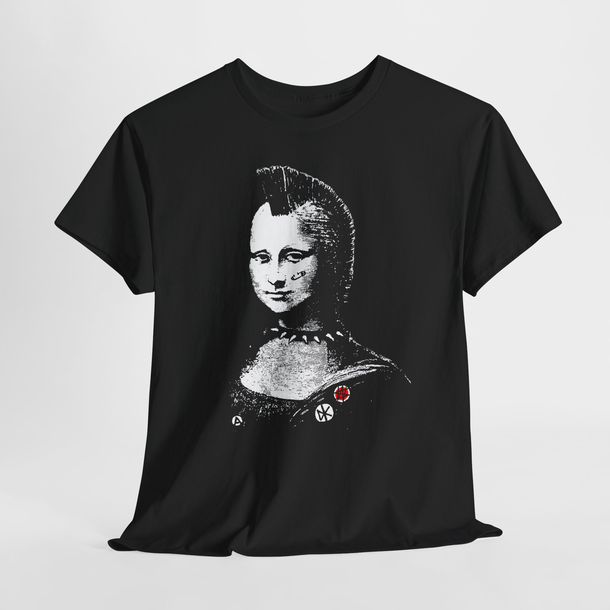 This Mona Mohawk T-shirt features an exclusive Winston Smith design that flips the classic Mona Lisa into a sharp punk icon—irreverent, witty, and instantly recognizable. Made from medium-weight 180 g/m² cotton with a clean tubular knit and resilient ribbed collar, it holds its shape and print beautifully. Finished with twill shoulder tape, a tear-away label, and ethically made materials, it’s built to feel timeless, intentional, and unmistakably lived-in.