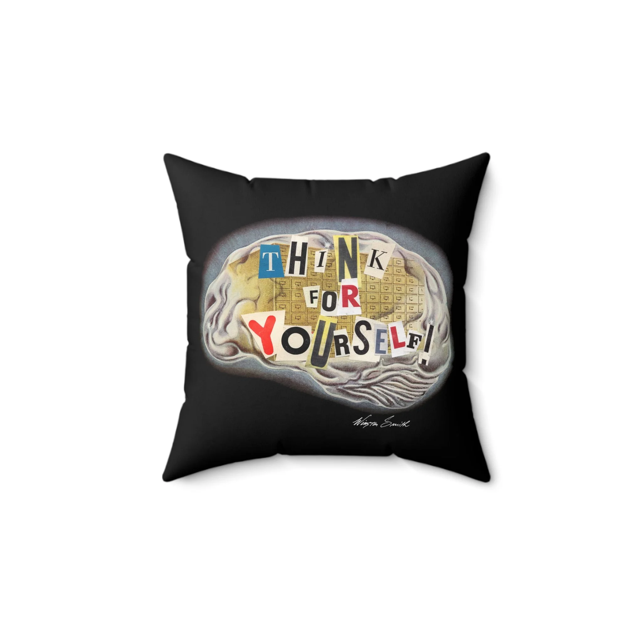 Elevate your space with our 14"x14" vibrant throw pillow featuring Winston's Smith's design and the empowering phrase "Think for Yourself." This eye-catching decor piece not only brightens the room but also inspires bold thinking and individuality. Perfect for living rooms, bedrooms, or cozy nooks, it's a reminder to embrace your unique perspective with every glance. Make a statement in comfort and style—get yours today and let your thoughts shine!